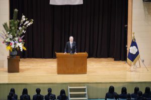 3年間では、学力・コミュニケーション能力・挫折力の3つの力をつけてください。学力は進路の幅を広げ選択の自由度を増すことに繋がります。コミュニケーション能力は他者との人間関係性を上手く取り結ぶことに繋がります。人の気持ちを理解し、人の考え方にも理解を示すこと、即ちお互いを尊重することが人間社会を生きる上で最も大切なことです。これがなければ、個人間ではいじめが起きますし、国際間では戦争になります。勉強でも部活動でも失敗や挫折はつきものです。失敗や挫折がなければ成功もありません。失敗や挫折にめげることなくそこから学び立ち上がる力をつけてください。レジリエンス(回復力)と言われていますが、わたしはこれを挫折力と呼んでいます。