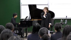 10月14日(金) シンガーソングライターのSHUUBIさんと、ピアニストの松本圭司さんをお招きし、特別授業を実施しました。