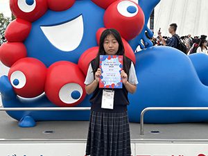 昨年度に引き続き、本年度も書類選考を通過し、見事本選へ進出しました。さらに、優秀賞を獲得することができました。本年度は特別に、大阪・関西万博会場でプレゼンテーション発表を行う機会をいただき、世界中の人々が集う舞台で、自分たちの考えを発信するという貴重な経験を積むことができました。