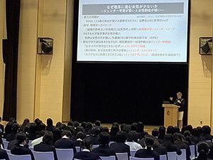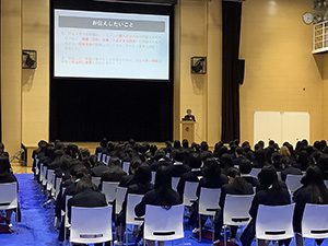 1年生は「自己理解」を目的にしており、今回は社会の状況や今後のあり方などについて、「女子大学宣言」を出された大学からのお話をいただくことができました。今後の高校生活や卒業後の社会での過ごし方や生き方を創造する機会になりました。