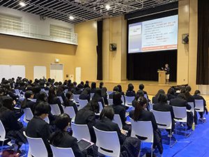 11月6日(木)に「京都女子大学」学長の竹安栄子先生をお招きして、進路講演会を開催しました。